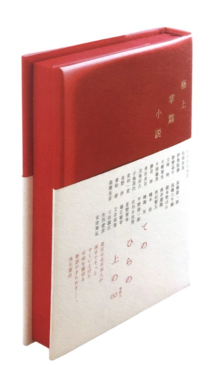這本《極上掌篇小說》如同書名,是一本收錄三十位作家的掌篇小說選集,(掌篇小說的字數比短篇小說更少)。製作過程中,鈴木成一不斷地構思如何表現「極上」這字眼,於是想到將封面上一層鮮紅亮P,而且四個書角特別加強亮度,並在書內的餘白以及書口處都塗上紅色,整本書看起來紅通通的,展現如珠寶般華麗的質感與份量感。